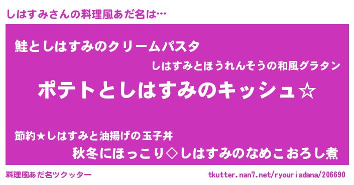 | 意味不明あだ名 | 『とにかく怪しいしはすみ』 |