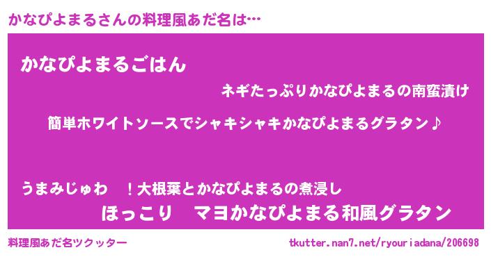| 男性向けラノベタイトル風あだ名 | 『かなぴよまるの嫁は女の子じゃないと思った?』 |