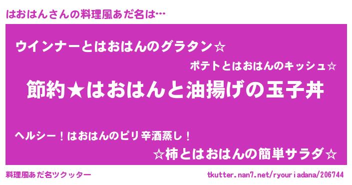 | ピコ太郎風あだ名 | 『ハコ八郎』『ピハ二郎』『ハオ十郎』 |