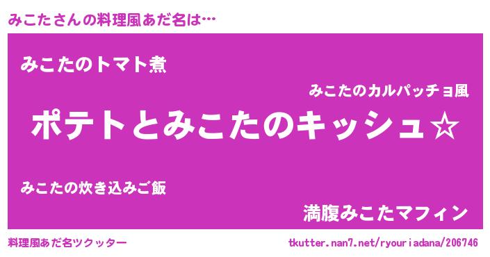 | ヒーロー風カッコイイあだ名 | 『銀牙騎士ミコ』『正義の使者みこた』 |