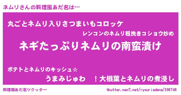 | ヘコむあだ名 | 『ネムにゅー』『なまこ酢』『ネムを』 |