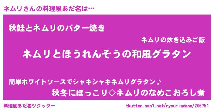 | 意味不明あだ名 | 『ニラ科ネムリ属』『永久保存ネムリ』 |