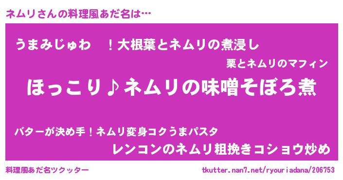 | ヘコむあだ名 | 『ネムにー』『つくし』『ネムぷりん』 |