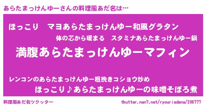 | 胡散臭い通販商品みたいなあだ名 | 『絶対に幸福をもたらす健康食品…その名も「あらたまっけんゆー」』 |