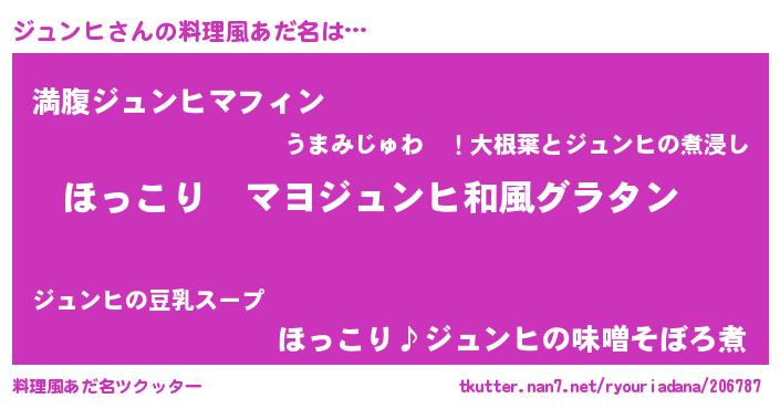 | 胡散臭い通販商品みたいなあだ名 | 『あなたにだけ特別に提供する世界で10本だけ現存している希少なブランデー…その名も「ジュンヒ」』 |