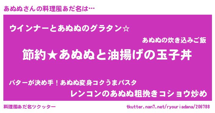 | ポケモン風あだ名 | 『アヌチュウ』『アヌヌダネ』 |