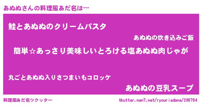 | 意味不明あだ名 | 『永久保存あぬぬ』『ペロリンあぬぬ』 |