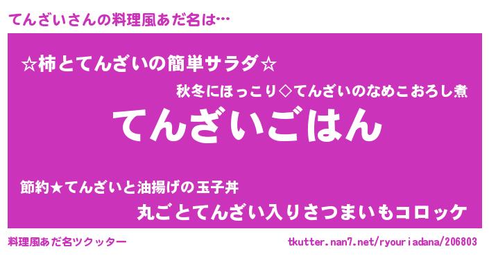 | 意味不明あだ名 | 『なめこ科てんざい属』『自称てんざい』 |