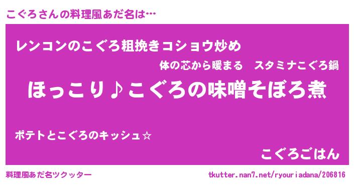 意味不明あだ名 | 『ペロリンこぐろ』『自称こぐろ』 |