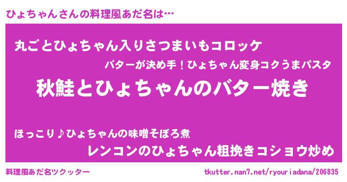 | 胡散臭い通販商品みたいなあだ名 | 『来世でも幸せになれる健康食品…その名も「ひょちゃん」』 |