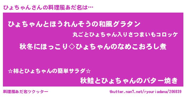 | ヘコむあだ名 | 『ひょちゃん(苦笑)』『ひょにー』 |