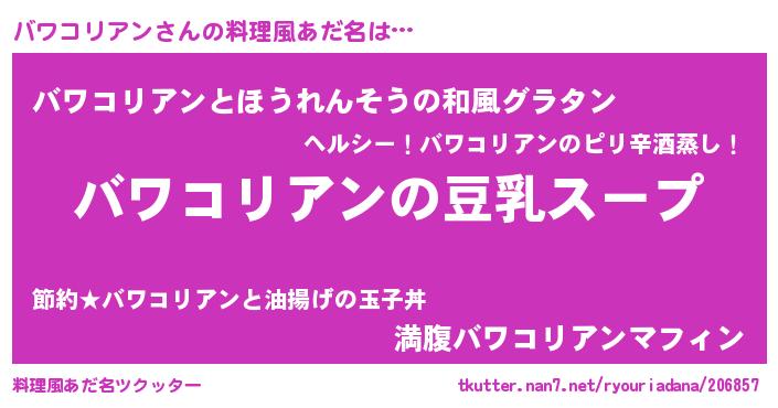 女子向けラノベタイトル風あだ名 | 『バワコリアンは平凡を望む』 |