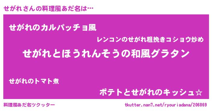 ヘコむあだ名 | 『せがっ子』『せがにゅー』『豆乳』 |