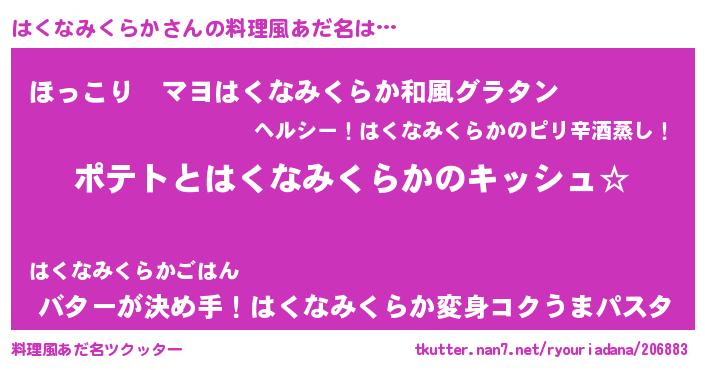 ポケモン風あだ名 | 『ヒハクナミクラカ』『ハークイ』 |