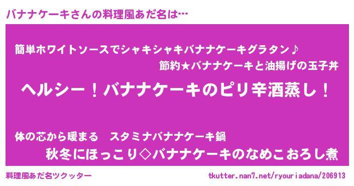| 男性向けラノベタイトル風あだ名 | 『Re:バナナケーキから始める異世界生活』 |