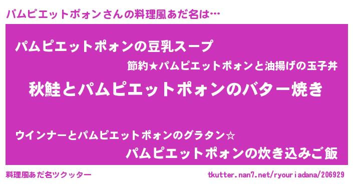 | 意味不明あだ名 | 『永久保存パムピエットポォン』 |