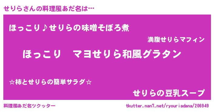ヘコむあだ名 | 『せりにゅー』『せり太郎』『牛乳』 |