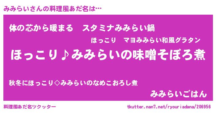 ファンタジー風あだ名 | 『ミミフェル』『エターナルミミライー』 |