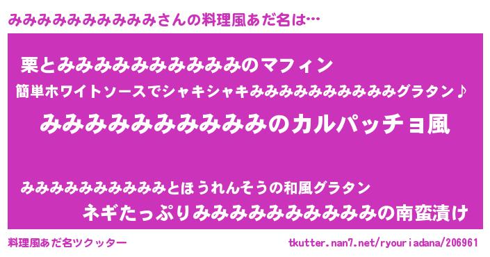 ヘコむあだ名 | 『みみにゅー』『みみを』『酢こんぶ』 |