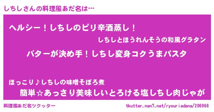 | ヘコむあだ名 | 『しちし(爆)』『しちにゅー』 |
