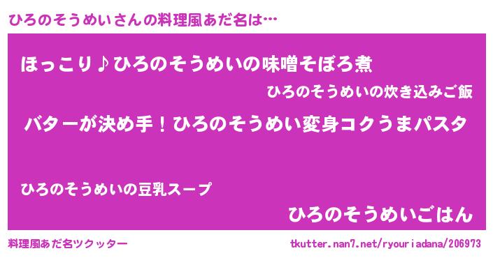 | 男性向けラノベタイトル風あだ名 | 『おまえをオタクにしてやるから、俺をひろのそうめいにしてくれ! 』 |