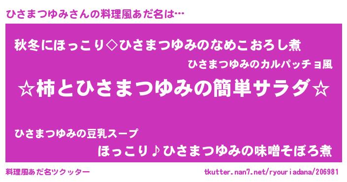| 胡散臭い通販商品みたいなあだ名 | 『必ず成功するブレスレット…その名も「ひさまつゆみ」』 |