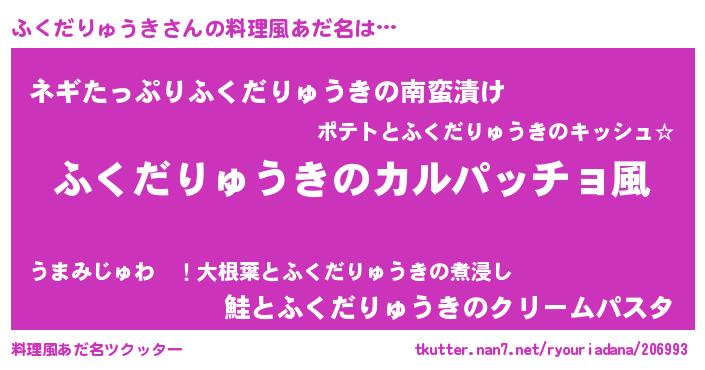 | 女子向けラノベタイトル風あだ名 | 『ふくだりゅうきが死なない童話 林檎のふくだりゅうきの診療簿』 |