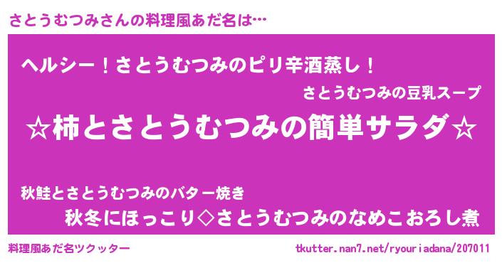 | ヘコむあだ名 | 『さとを』『さとうむつみ(爆)』 |