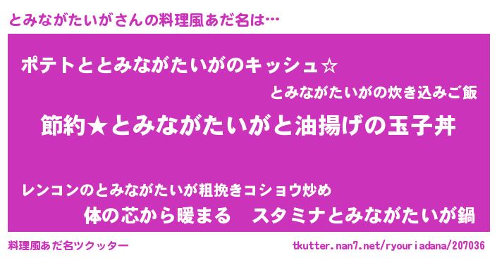 ポケモン風あだ名 | 『トミチュウ』『ヒトミナガタイガ』 |