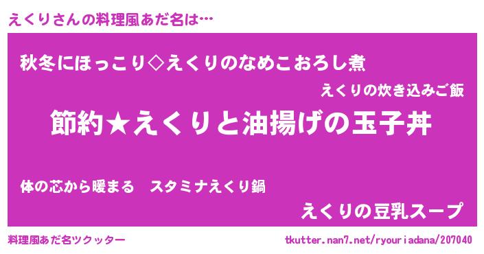 意味不明あだ名 | 『ペロリンえくり』『えくりフォーエバー』 |