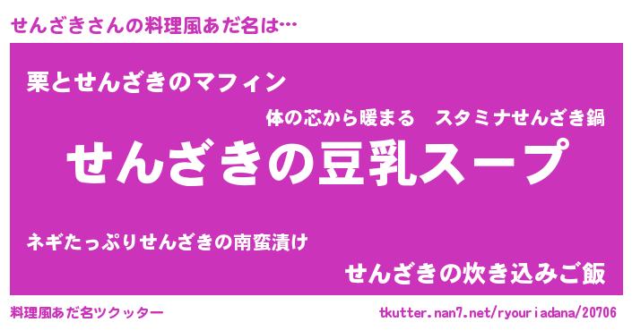 | ヒーロー風カッコイイあだ名 | 『黄金騎士セン』『ウルトラせんざきマン』 |