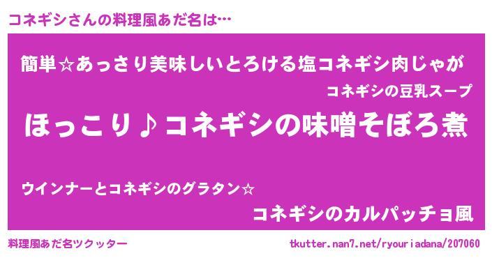男性向けラノベタイトル風あだ名 | 『コネギシの憂鬱』『魔弾の王とコネギシ』 |