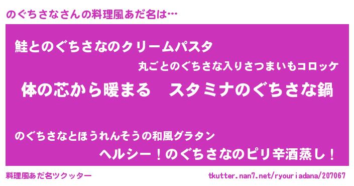 ヘコむあだ名 | 『つくし』『のぐちさな(遠い目)』 |