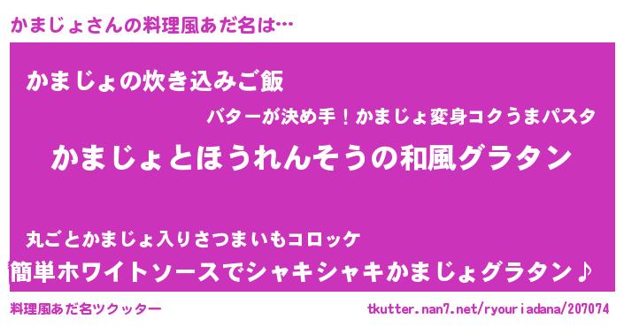 | 女子向けラノベタイトル風あだ名 | 『かまじょの玉の輿計画!』 |