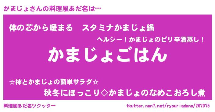 | 意味不明あだ名 | 『なめこ科かまじょ属』『自称かまじょ』 |