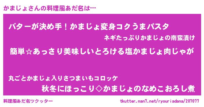 | 胡散臭い通販商品みたいなあだ名 | 『前代未聞の健康食品…その名も「かまじょ」』 |