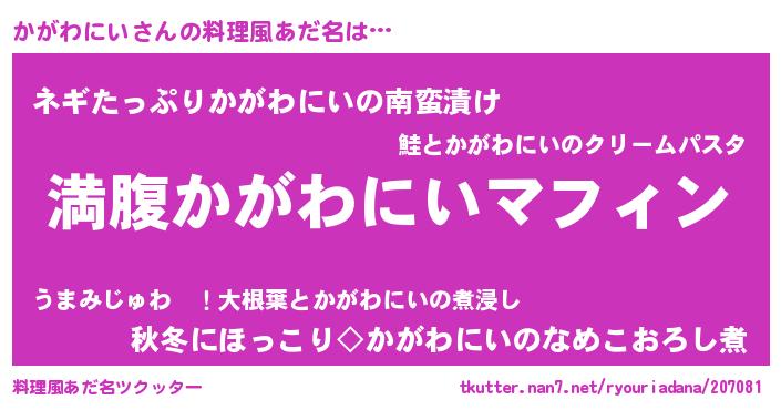 ヘコむあだ名 | 『かがわにい(爆)』『かがにゅー』 |