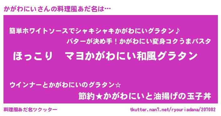 | 意味不明あだ名 | 『住所不定無職かがわにい(2歳)』 |