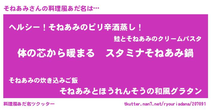 | 欧米人風あだ名 | 『そねあみクリステル』 |