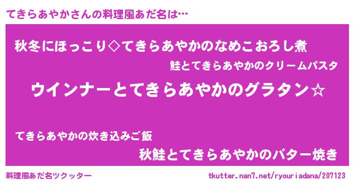 ヘコむあだ名 | 『なまこ酢』『てきらあやか(遠い目)』 |