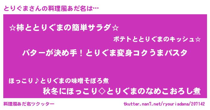 男性向けラノベタイトル風あだ名 | 『おまえをオタクにしてやるから、俺をとりぐまにしてくれ! 』 |