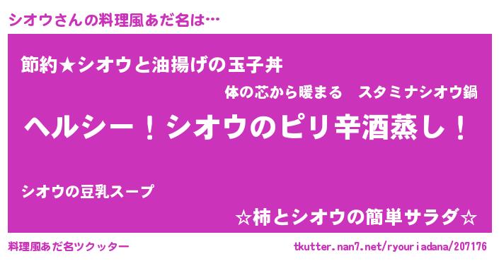 ヒーロー風カッコイイあだ名 | 『最強戦士シオウ』『スーパーシオウ』 |