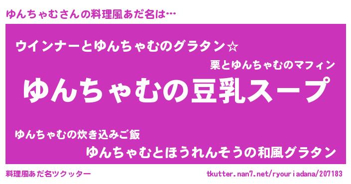 ヘコむあだ名 | 『ゆんを』『豆乳』『ゆんにゅー』 |