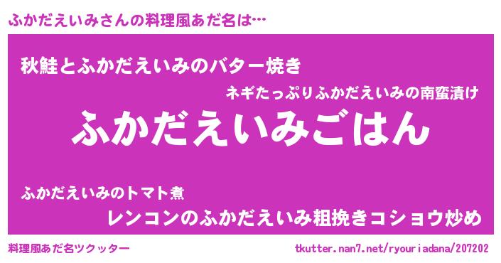 ヘコむあだ名 | 『ふかだえいみ(爆)』『ふかにゅー』 |