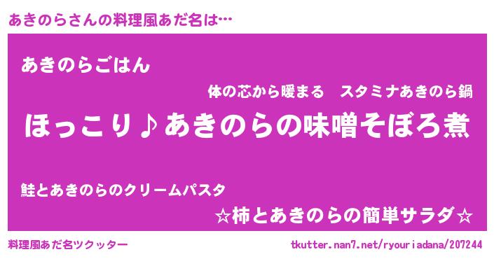 女子向けラノベタイトル風あだ名 | 『(仮)あきのらのやんごとなき事情』 |