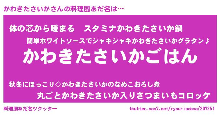 ポケモン風あだ名 | 『カワキング』『カワキダネ』 |