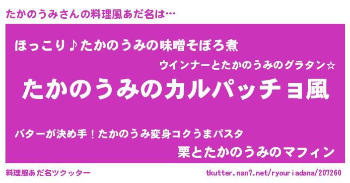 ヘコむあだ名 | 『たかにゅー』『つくし』 |