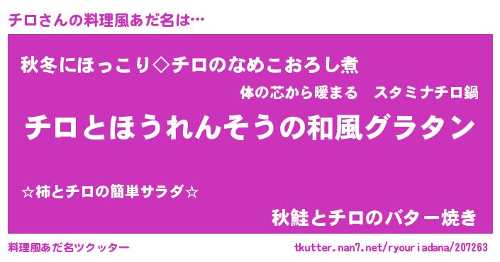 意味不明あだ名 | 『ニラ科チロ属』『永久保存チロ』 |