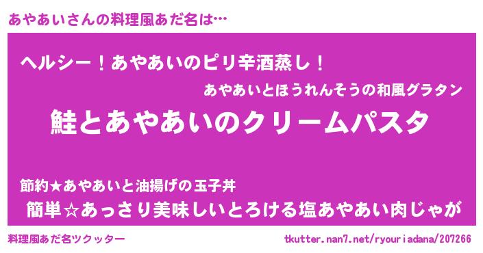 | 男性向けラノベタイトル風あだ名 | 『ノーゲーム・ノーアヤアイ』 |