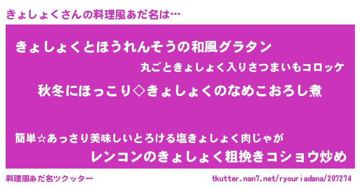 ヘコむあだ名 | 『きょしょく(笑)』『きょっふぃ~』 |